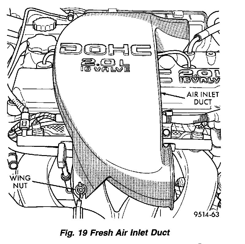 3. loosen wing nut on intake and remove fresh air inlet duct (Fig. 19).