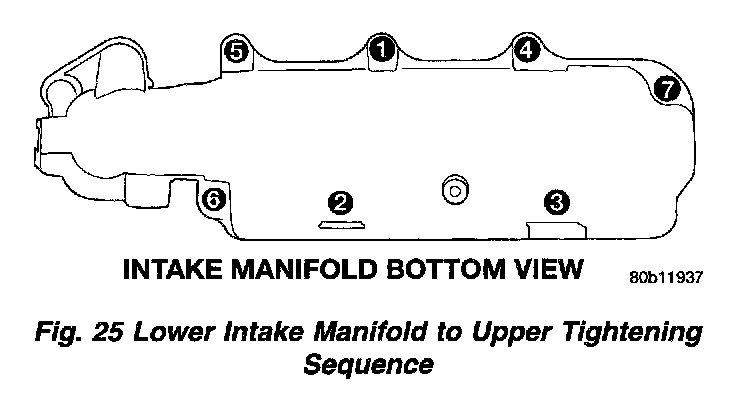 1. Assemble lower manifold to upper (if separated) and tighten bolts in sequence shown (Fig. 25), to 28 Nm (250 inch lbs.).