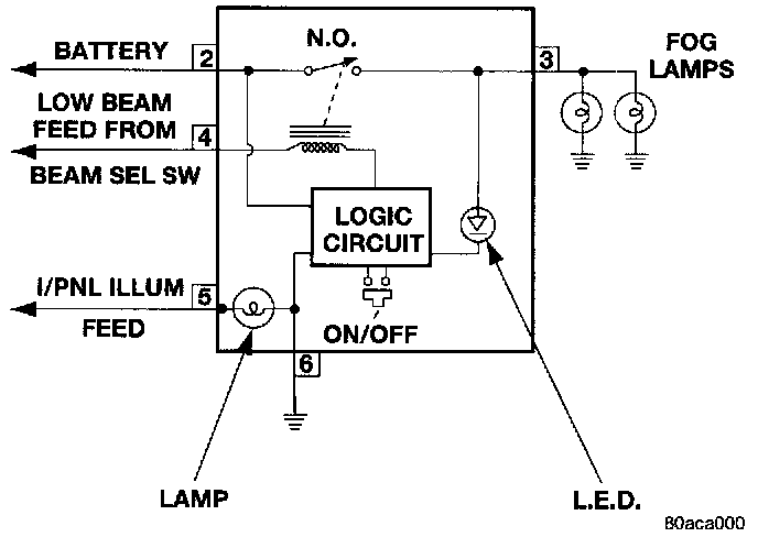 4. Push the fog lamp switch button. The test lamp and the LED indicator on the front of the switch should illuminate.