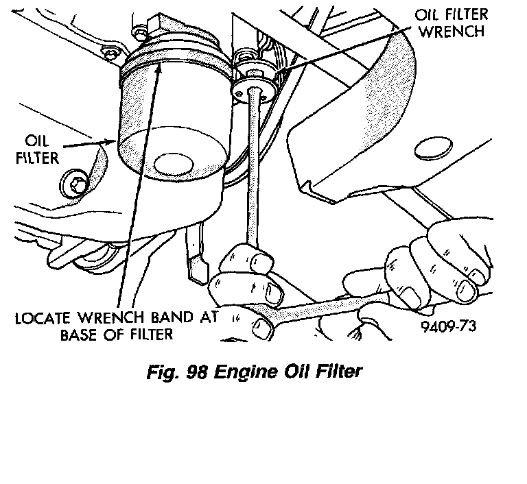 CAUTION: When servicing the oil filter avoid deforming the filter, install tool band strap against the seam at the base of the filter. The seam, joining the can to the base is reinforced by the base plate.