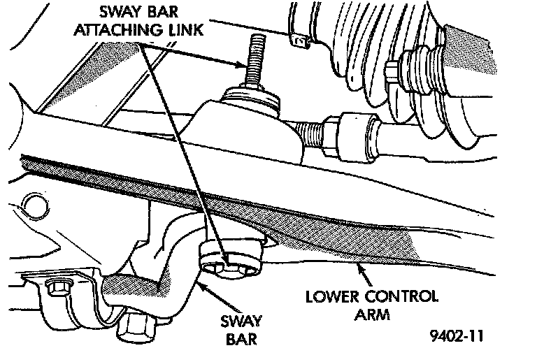 3. Remove the 2 attaching links connecting the stabilizer bar to the lower control arms.