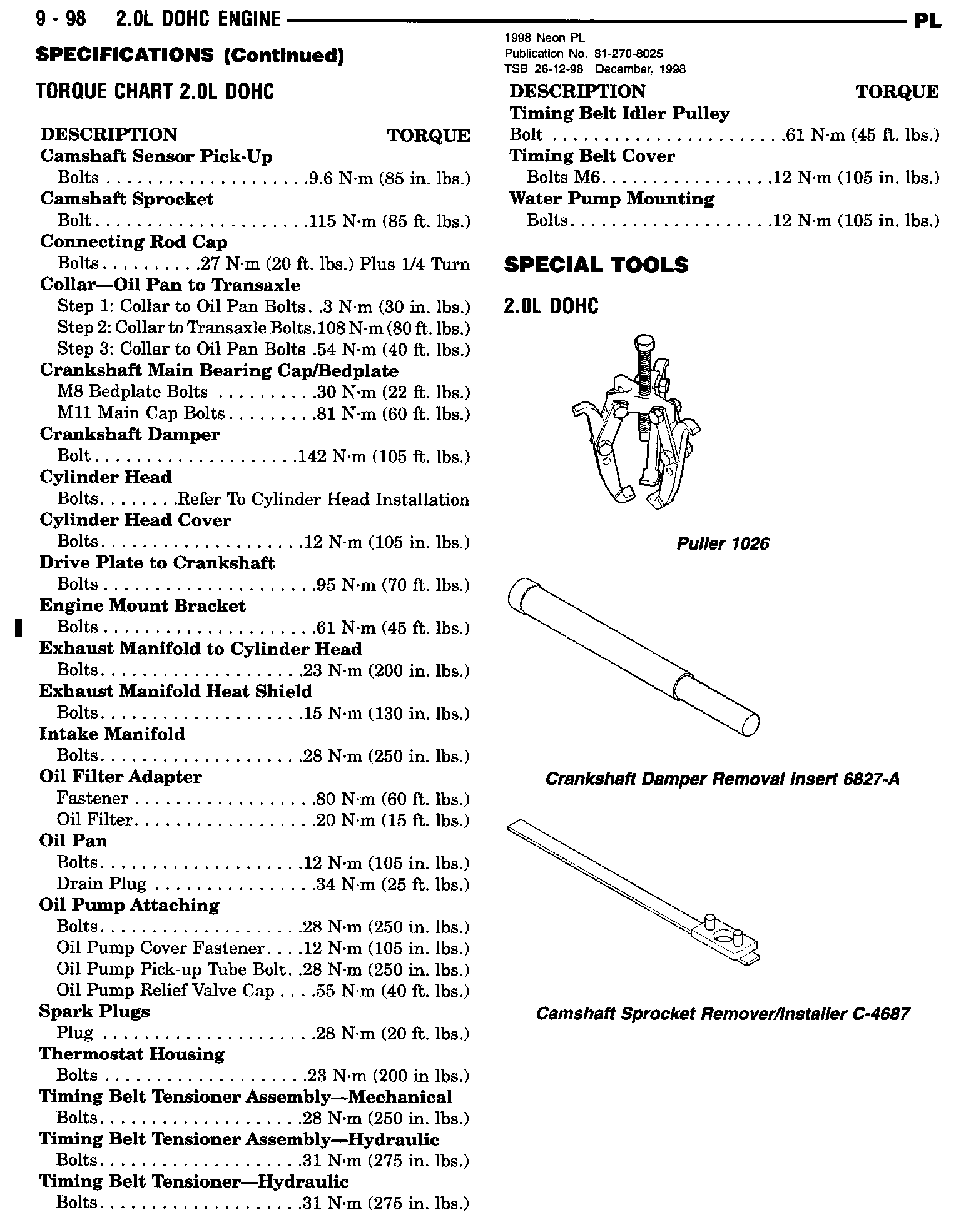 Revisions to the 2.0L Engine torque specifications