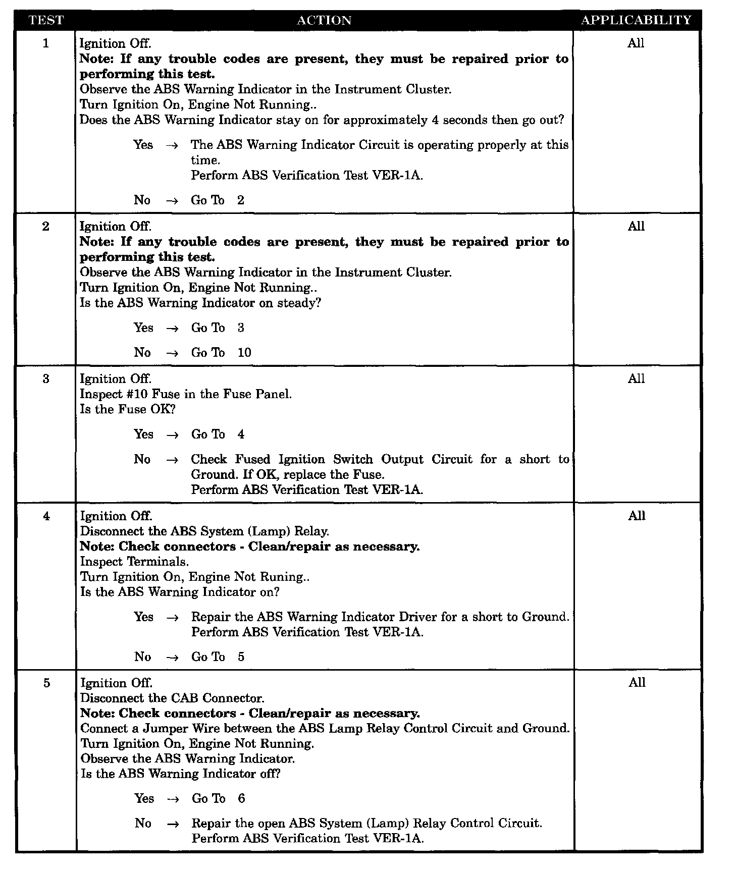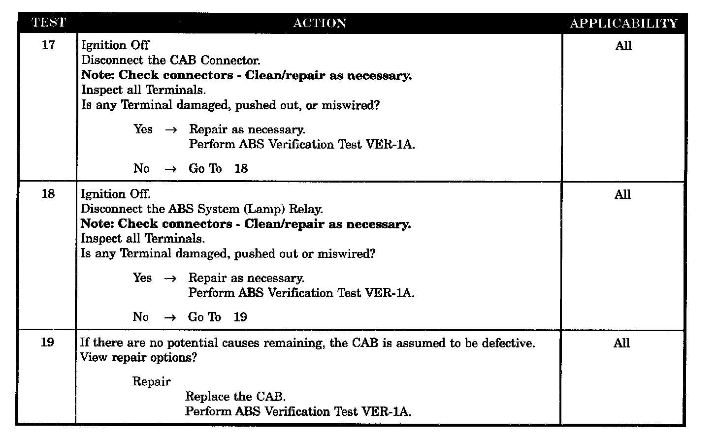 ABS LAMP RELAY TERMINAL OBSERVABLE DEFECT