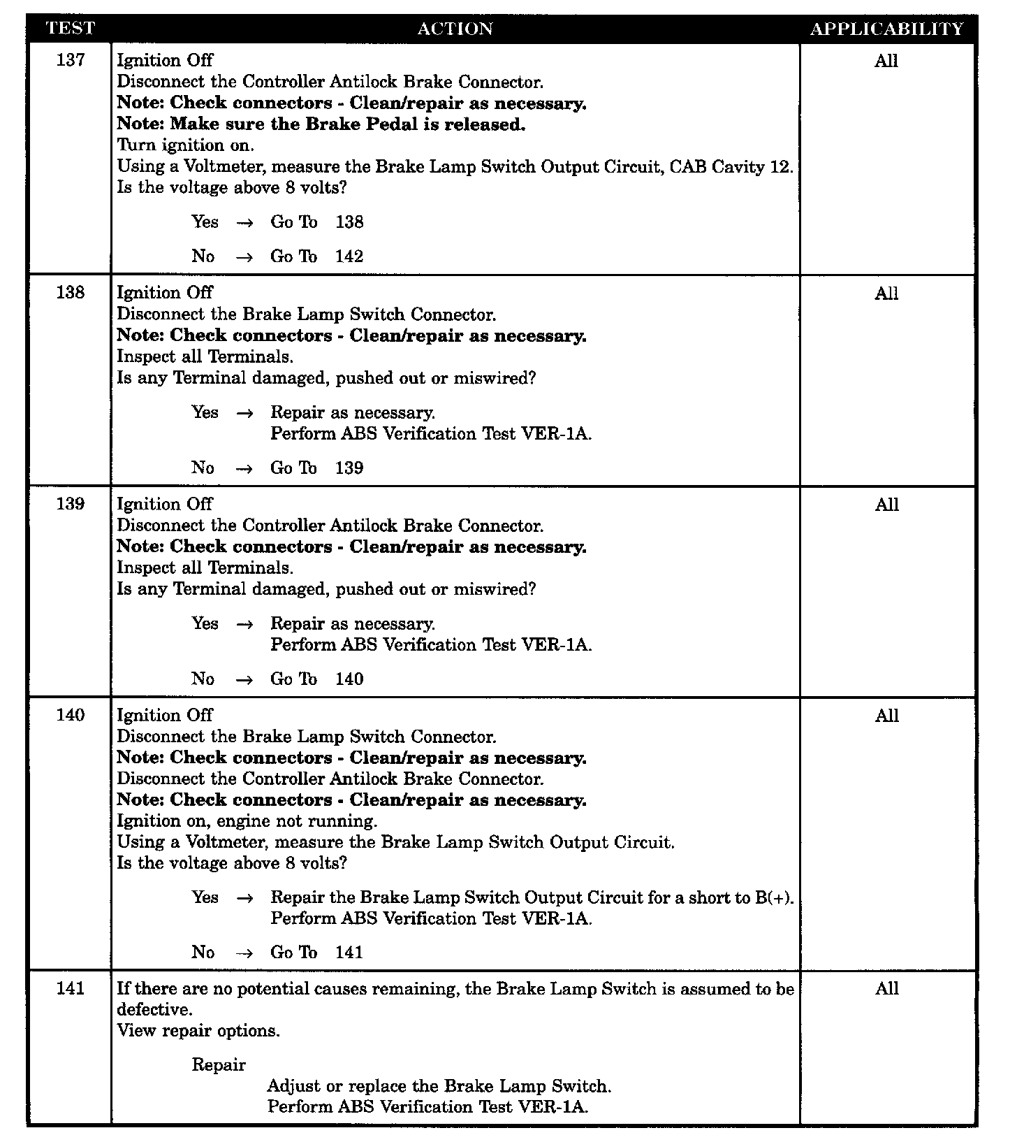 BRAKE SWITCH OUTPUT CIRCUIT SHORT TO B+