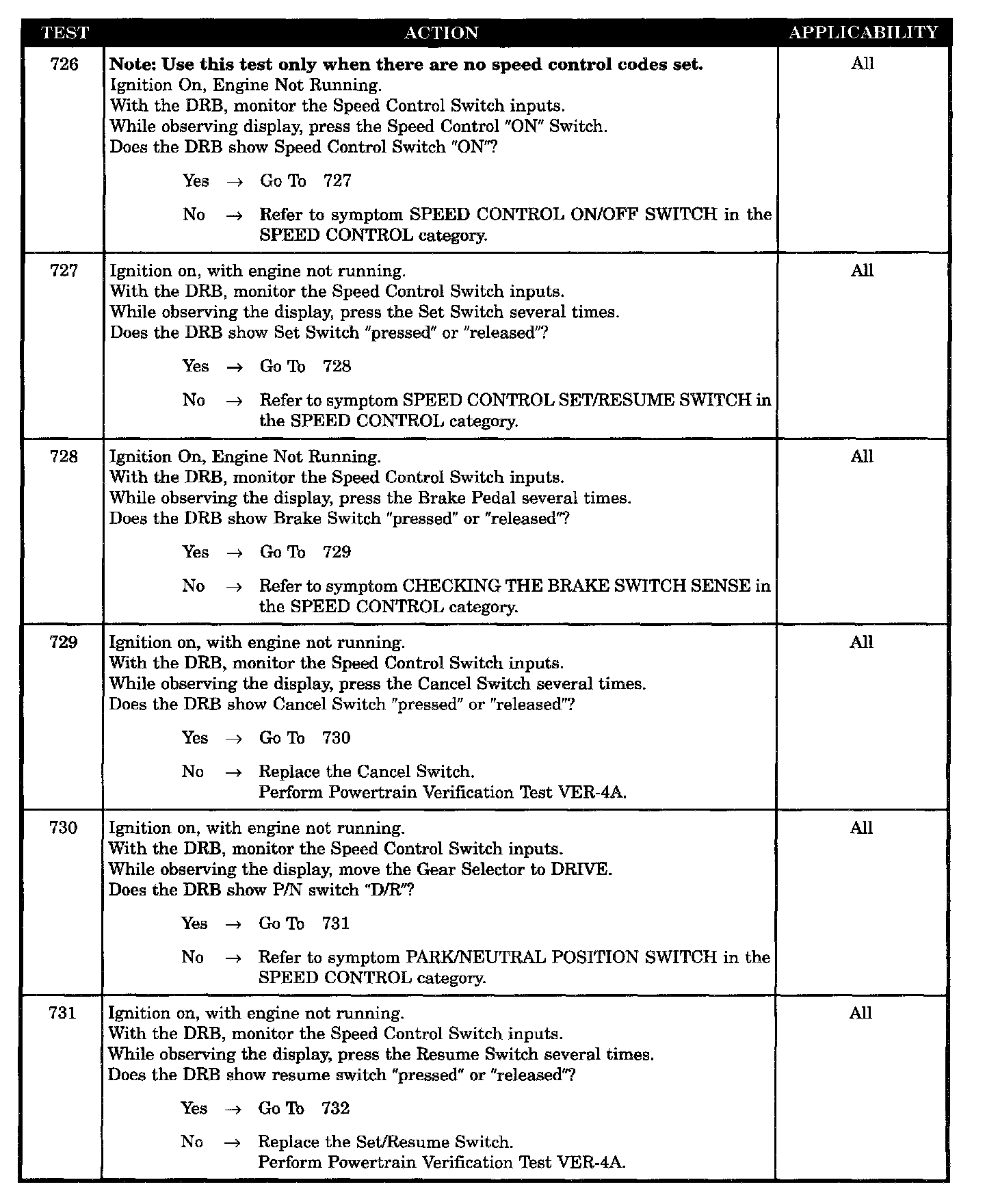 Tests 726 - 731: