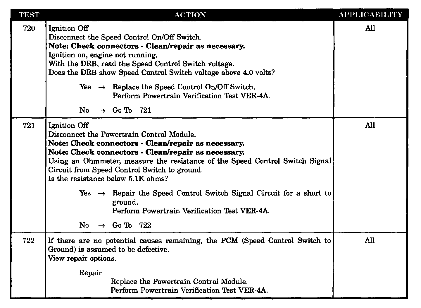 - Speed control ON/OFF switch voltage < 1.0 volt