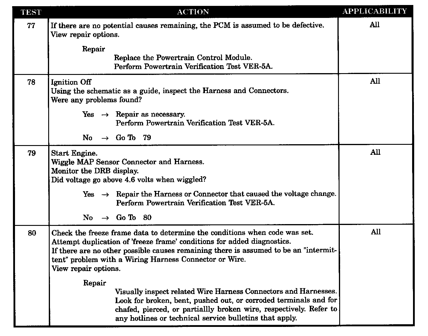 - MAP sensor wiring harness intermittent defect