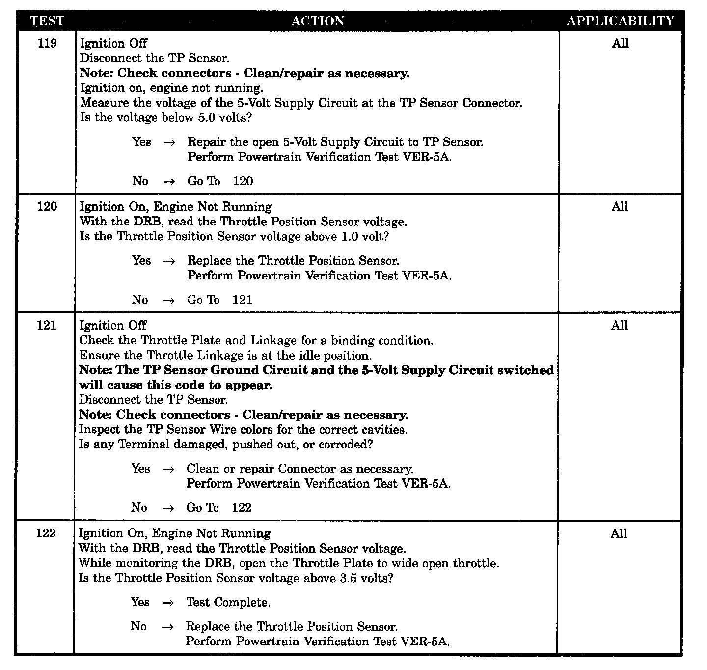 PCM performs 2 separate tests on TPS. High volt test when engine speed very low and manifold vac very high; indicates throttle plate nearly closed. Low volt test when eng speed > 25 mph and manifold vacuum low; indicates throttle plate open, TPS signal high.