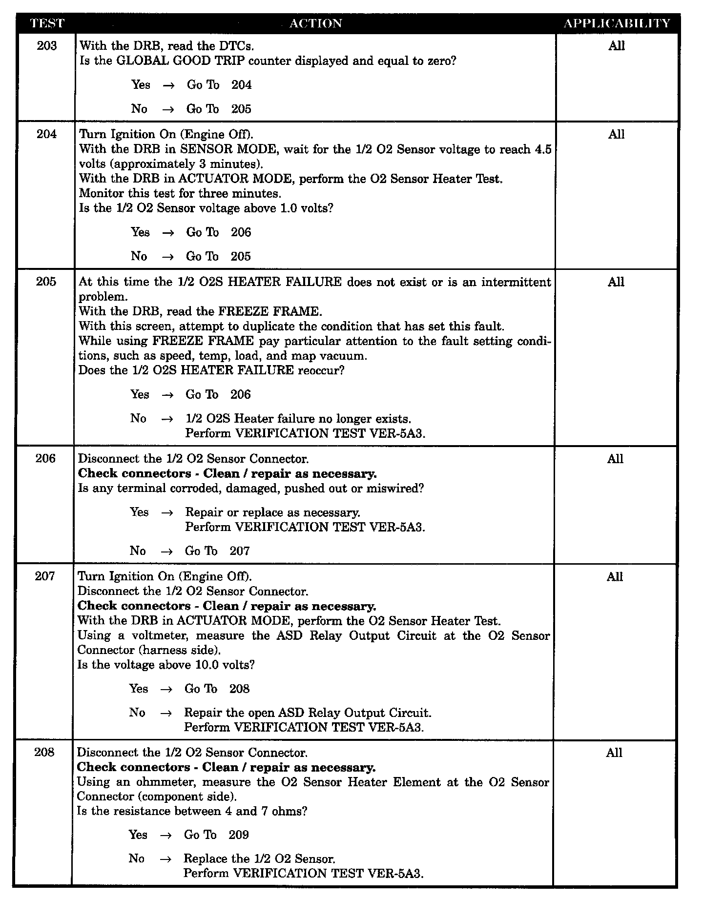 Tests 203 - 208: