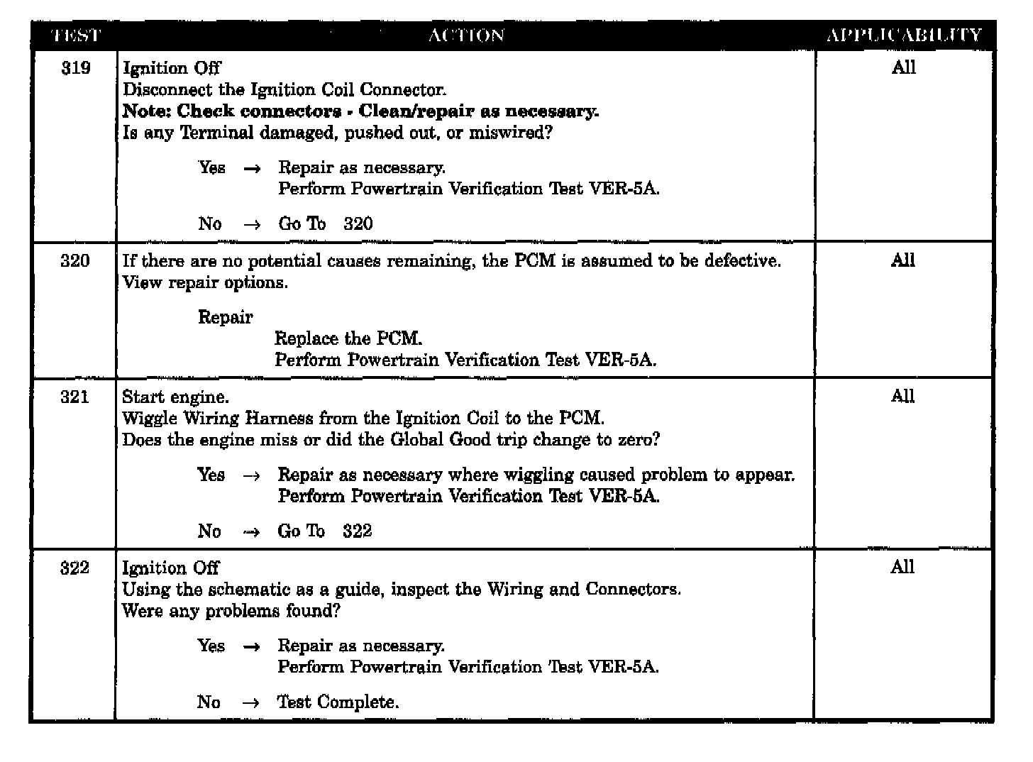 - Ignition coil wiring harness intermittent defect