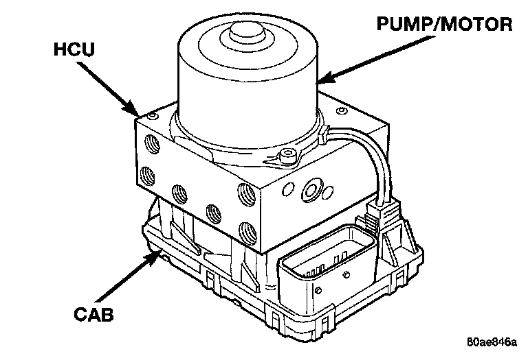 The Controller Antilock Brake (CAB) is a microprocessor-based device which monitors the Antilock Brake System (ABS) system during normal braking and controls it when the vehicle is in an ABS stop. The CAB is mounted to the bottom of the HCU. The CAB uses a 25-way electrical connector on the vehicle wiring harness. The power source for the CAB is through the ignition switch in the RUN or ON position. The CAB is on the PCI bus.