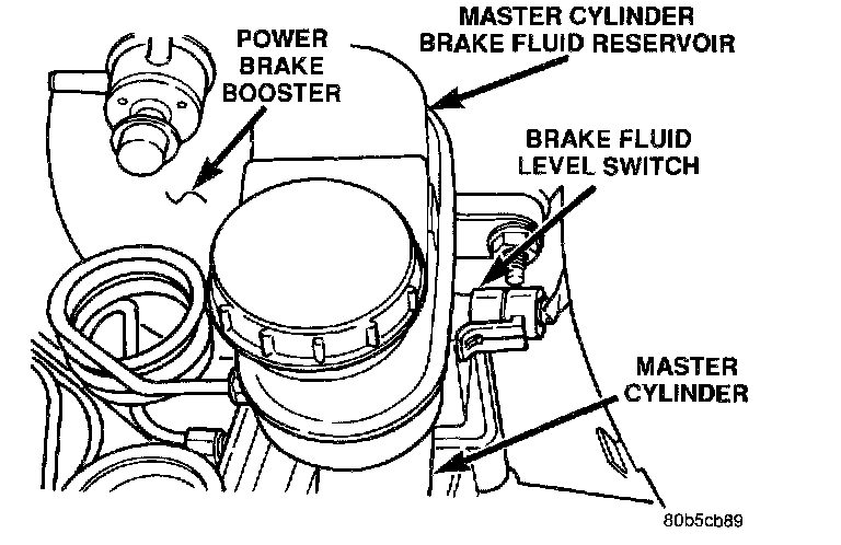 1. Remove the vehicle wiring harness connector from brake fluid level switch in master cylinder brake fluid reservoir.