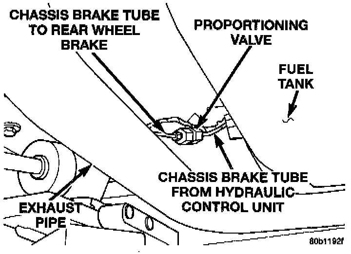 3. Remove the chassis brake tube nuts from the proportioning valve controlling the rear wheel of the vehicle which has premature wheel skid.