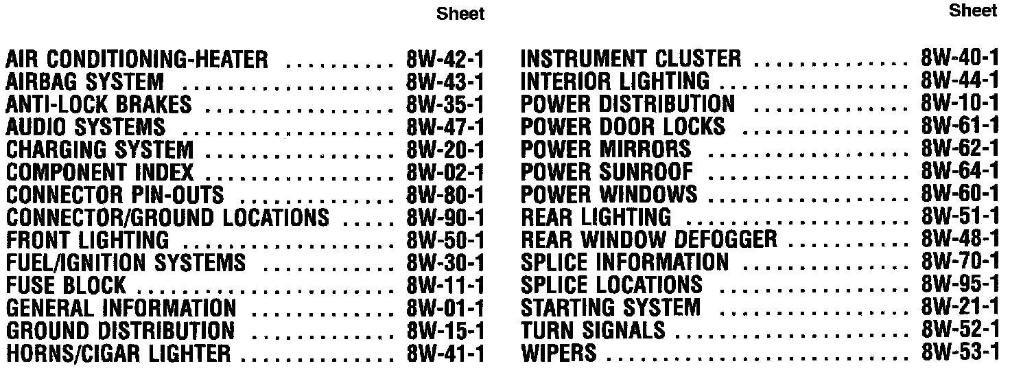 Wiring Diagram Component Index: