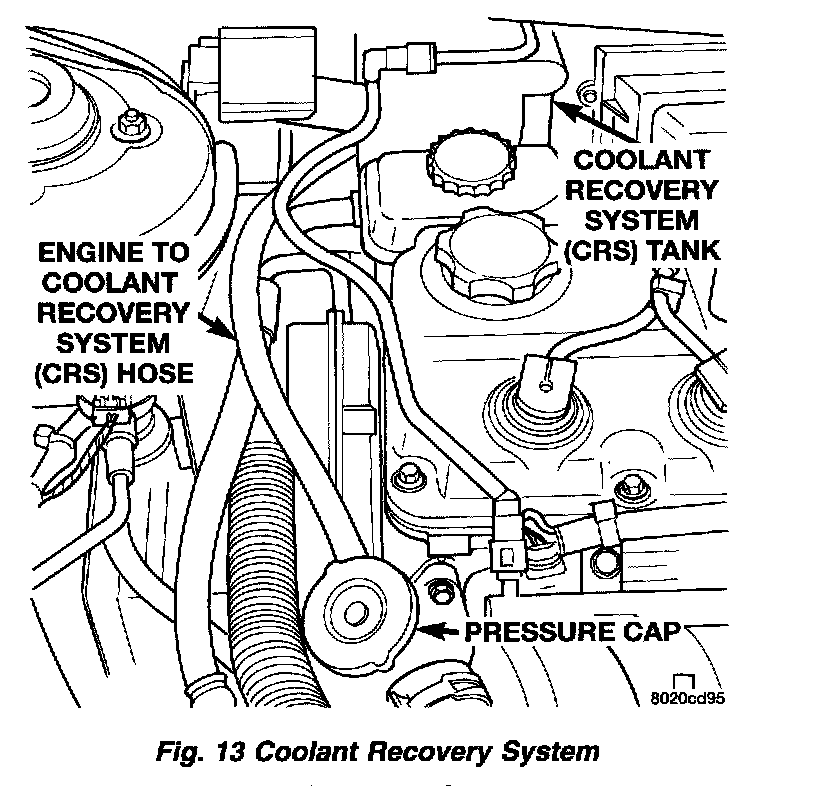 The coolant recovery/reserve system provides a quick visual method for determining the coolant level without removing the radiator cap. Simply observe, with the engine idling and warmed up to normal operating temperature that the level of the coolant in the recovery/reserve container is between the ADD and FULL marks.
