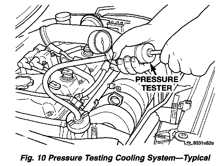 WARNING: WITH THE PRESSURE TESTER IN PLACE PRESSURE BUILDS UP QUICKLY. ANY EXCESSIVE PRESSURE BUILD-UP DUE TO CONTINUOUS ENGINE OPERATION MUST BE RELEASED TO A SAFE PRESSURE POINT. NEVER PERMIT PRESSURE TO EXCEED 138 kPa (20 psi).