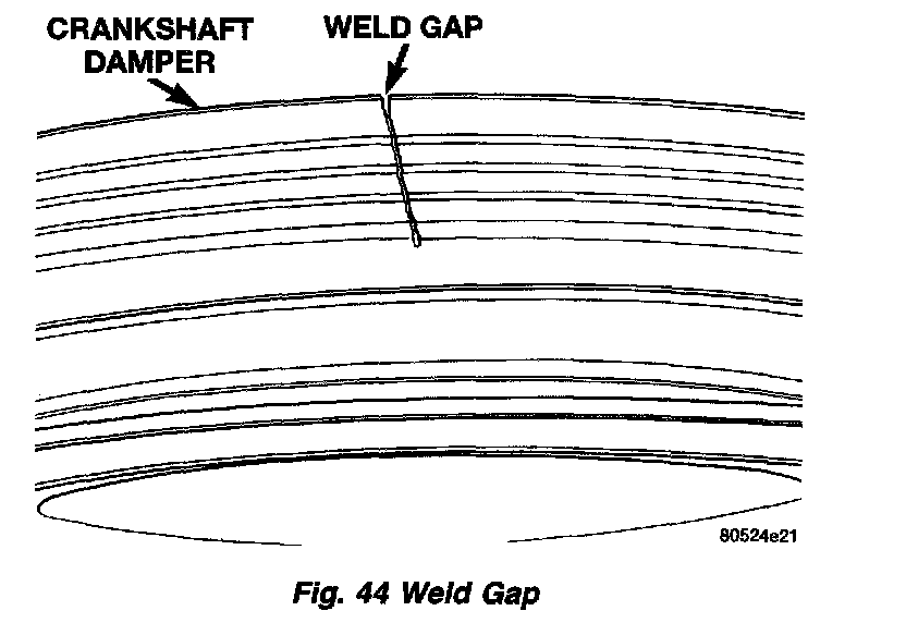 NOTE: If a gap is found in the crankshaft damper, in the area where the Poly-V Generator belt rides this is normal and is acceptable (Fig. 44).