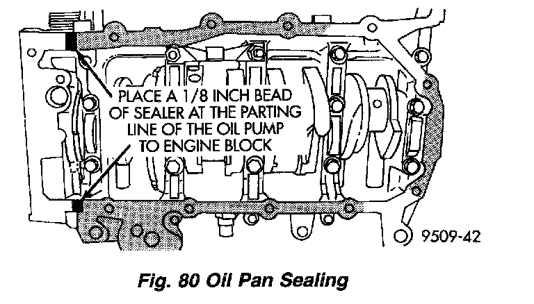 1. Apply Mopar(R) Silicone Rubber Adhesive Sealant or equivalent at the oil pump to engine block parting line.