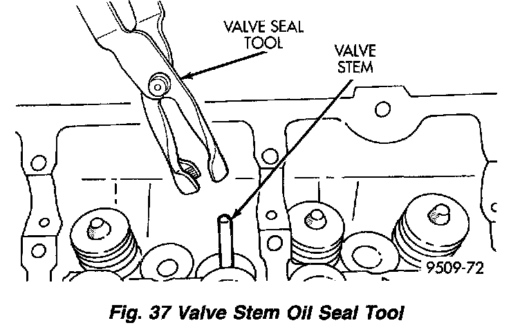 6. Remove valve stem seal by using a valve stem seal tool (Fig. 37).