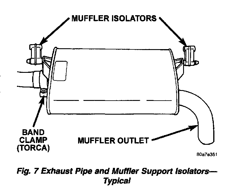 2. Loosen band clamp and remove support insulators at muffler. Remove muffler from exhaust pipe.