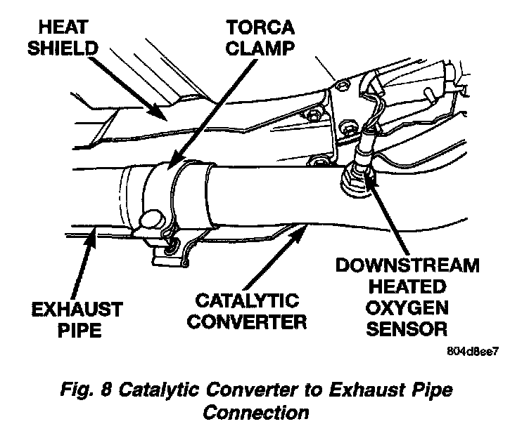 4. Loosen band clamp at the catalytic converter to exhaust pipe slip joint. Separate at slip joint.