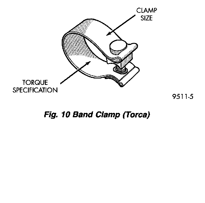 CAUTION: Band (Torca) clamps should never be tightened such that the two sides of the clamps are bottomed out against the center hourglass shaped center block. Once this occurs, the clamp has lost clamping force and must be replaced.