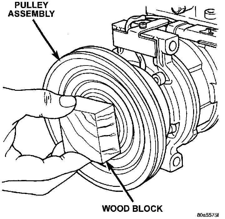 3. Install pulley assembly to compressor. If necessary, tap gently with a block of wood on the friction surface.