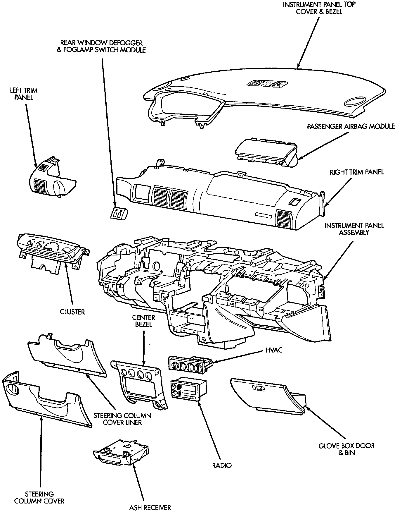 2. Using a trim stick (special tool #C-4755), gently pry up on the top cover and cluster bezel to remove.