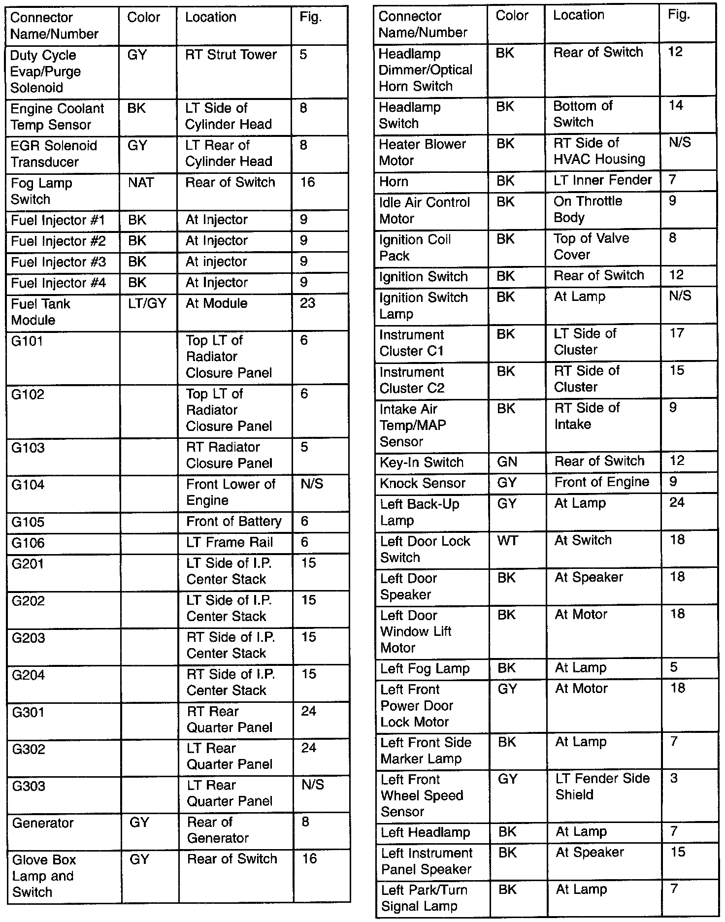 Connector & Ground Locations Index