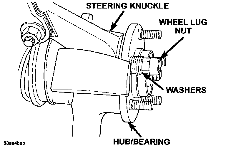 1. Install the stud in the flange of hub from the rear side. Install several washers and a wheel mounting nut on the stud. The wheel mounting nut must be installed with the flat side of the lug nut against the washers to eliminate binding.