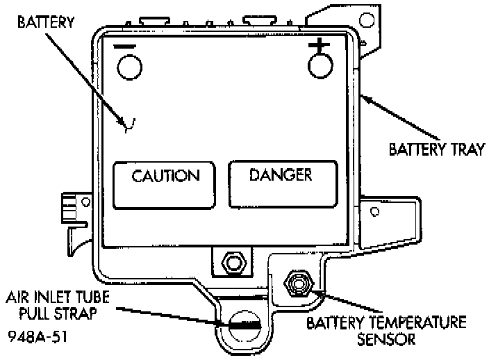 The battery temperature sensor is used to determine the battery temperature. This temperature data, along with data from monitored line voltage, is used by the PCM to vary the battery charging rate. System voltage will be higher at colder temperatures and is gradually reduced at warmer temperatures.