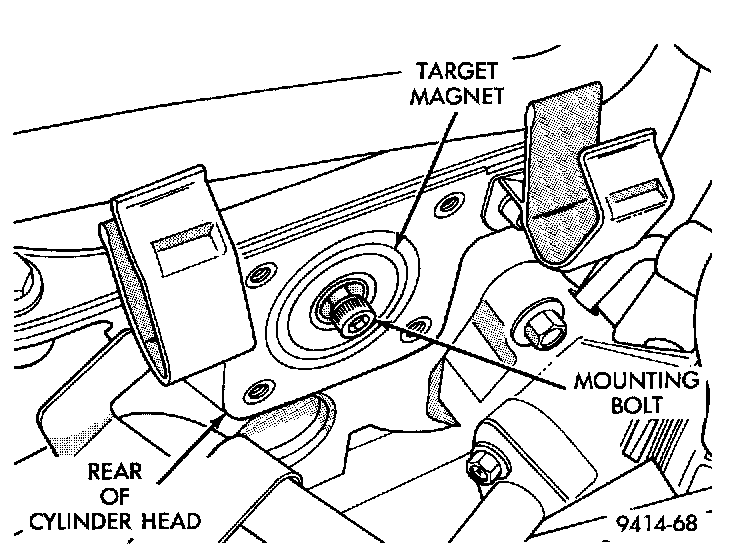 6. Loosen screw attaching target magnet to rear of camshaft.