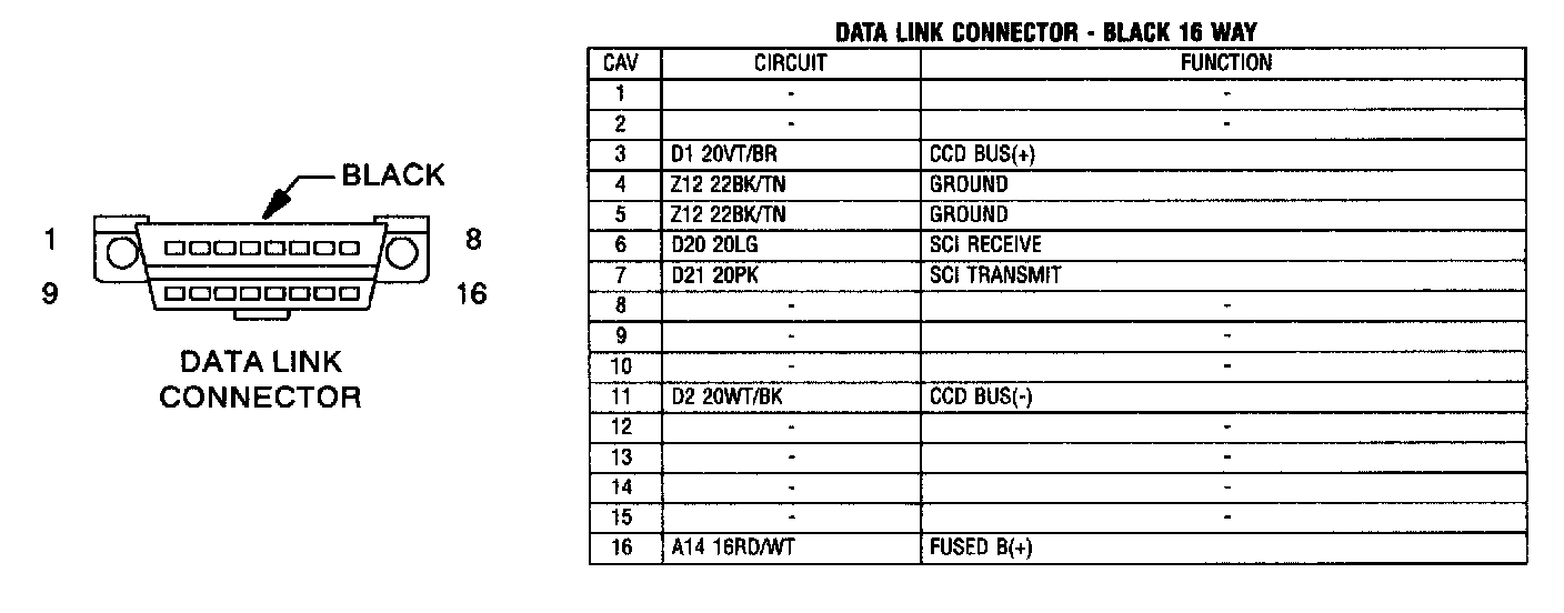 Data Link Connector - Black 16 Way: