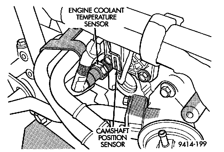 The coolant sensor threads into the rear of the cylinder head, next to the camshaft position sensor. New sensors have sealant applied to the threads.