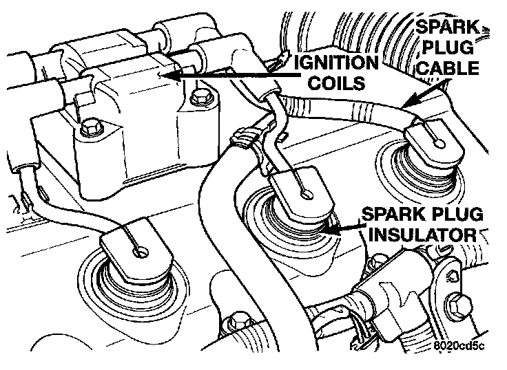 9. Inspect the ignition coil electrical connector. Ensure the spark plug insulators are firmly seated over the spark plugs.
