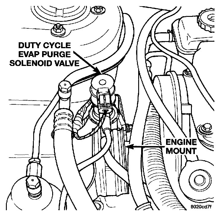 10. Inspect the electrical and hose connections at the duty cycle purge solenoid.