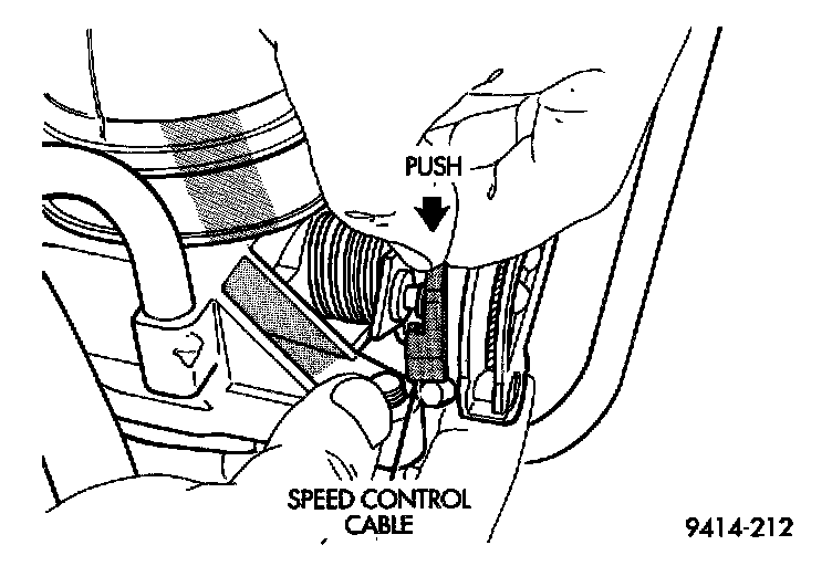 7. if equipped with speed control, hold throttle lever in the wide open position. Using finger pressure only, remove speed control cable by PUSHING connector off the lever nail head. DO NOT try to pull connector off perpendicular to the lever.