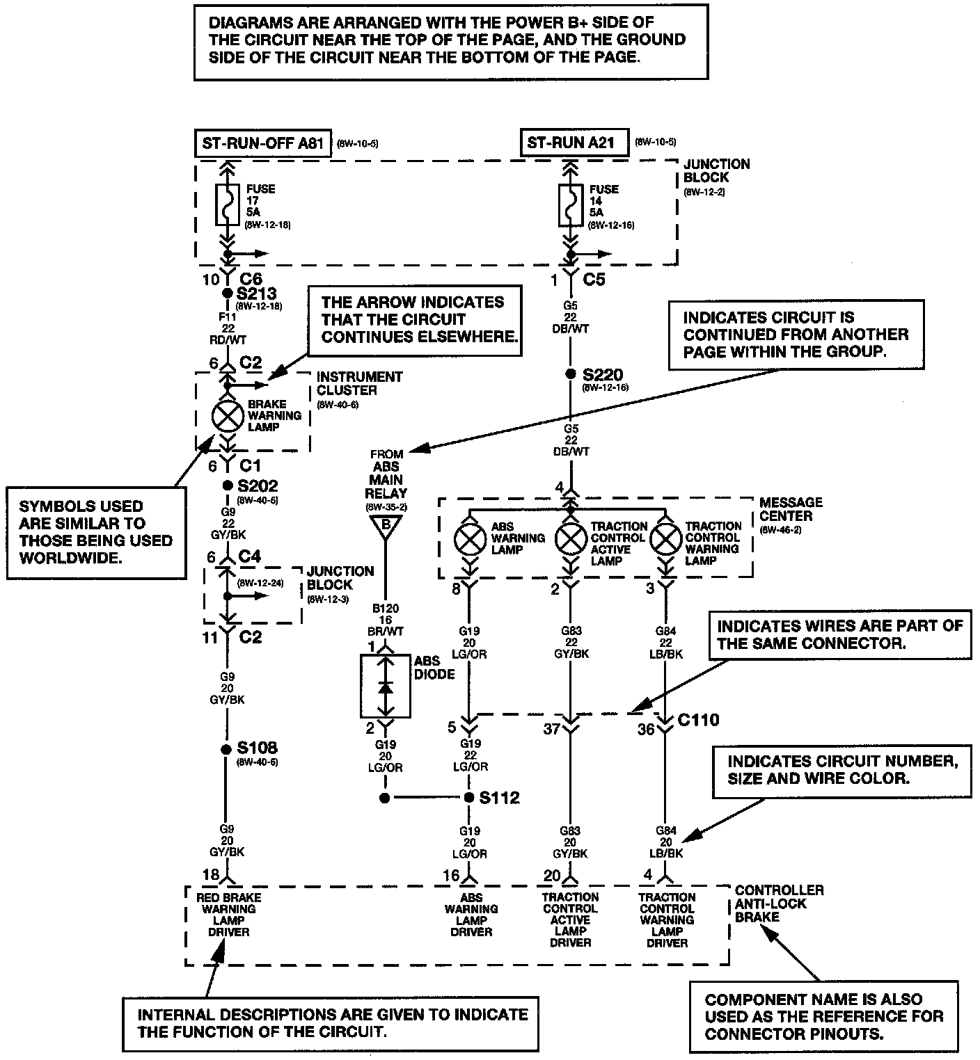 It is important to realize that no attempt is made on the diagrams to represent components and wiring as they appear on the vehicle. For example, a short piece of wire is treated the same as a long one. In addition, switches and other components are shown as simply as possible, with regard to function only.