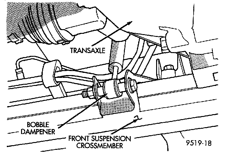 4. Remove engine/transaxle bobble dampener, on vehicles so equipped, from front suspension crossmember. Bobble strut does not need to be removed from transaxle assembly.