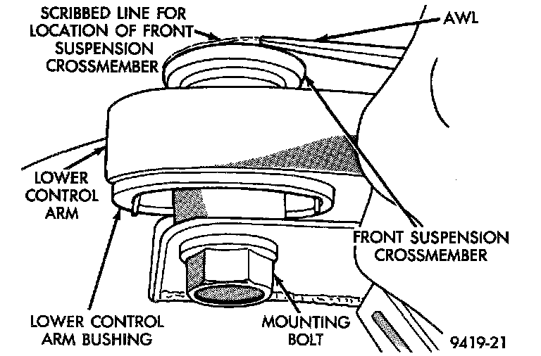 10. Using an awl, scribe a line marking the location of where front suspension crossmember is mounted against the body of the vehicle.