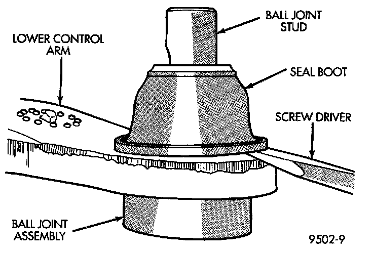 1. Using a screw driver or other suitable tool, pry the seal boot off of the ball joint.