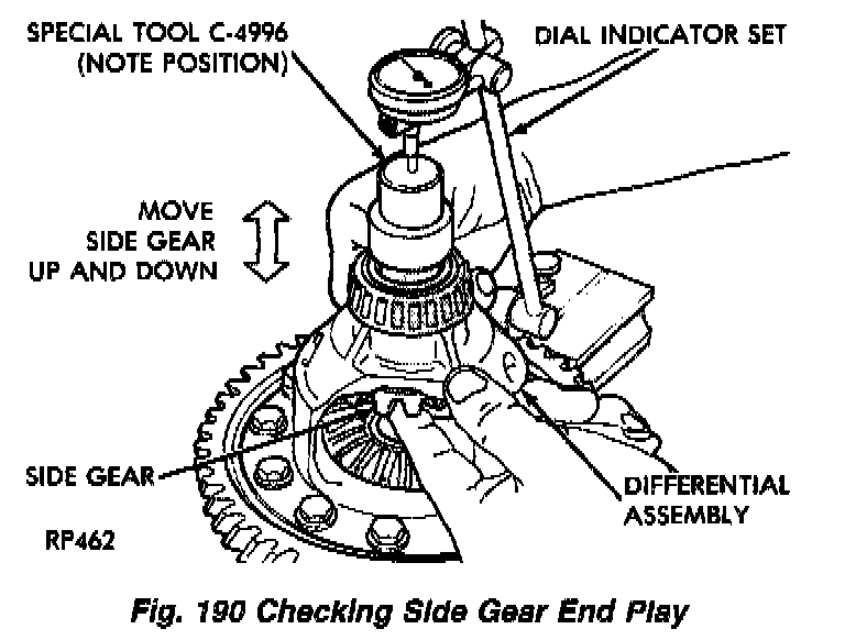 CAUTION: Side gear end play must be BETWEEN 0.001 to 0.013 inch.