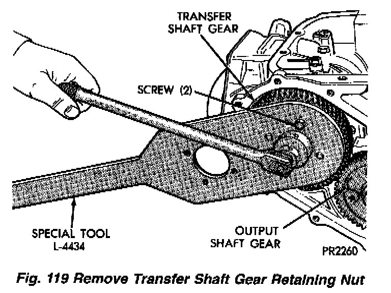 4. Remove stirrup from transfer gear.