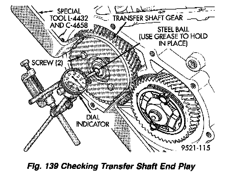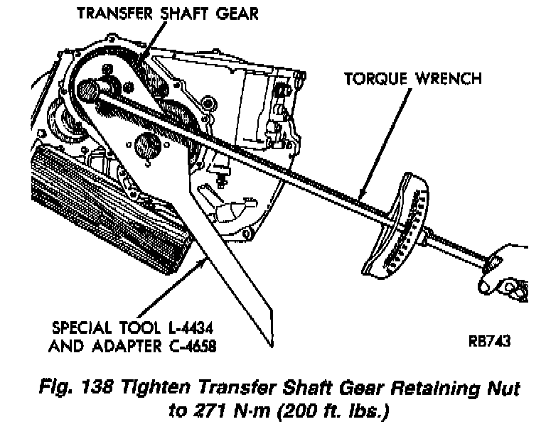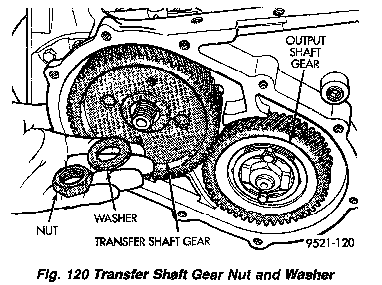 NOTE: Once the stirrup assembly is positioned onto the transfer gear, it is necessary to "clock" the stirrup against the flats of the transfer gear retaining nut.