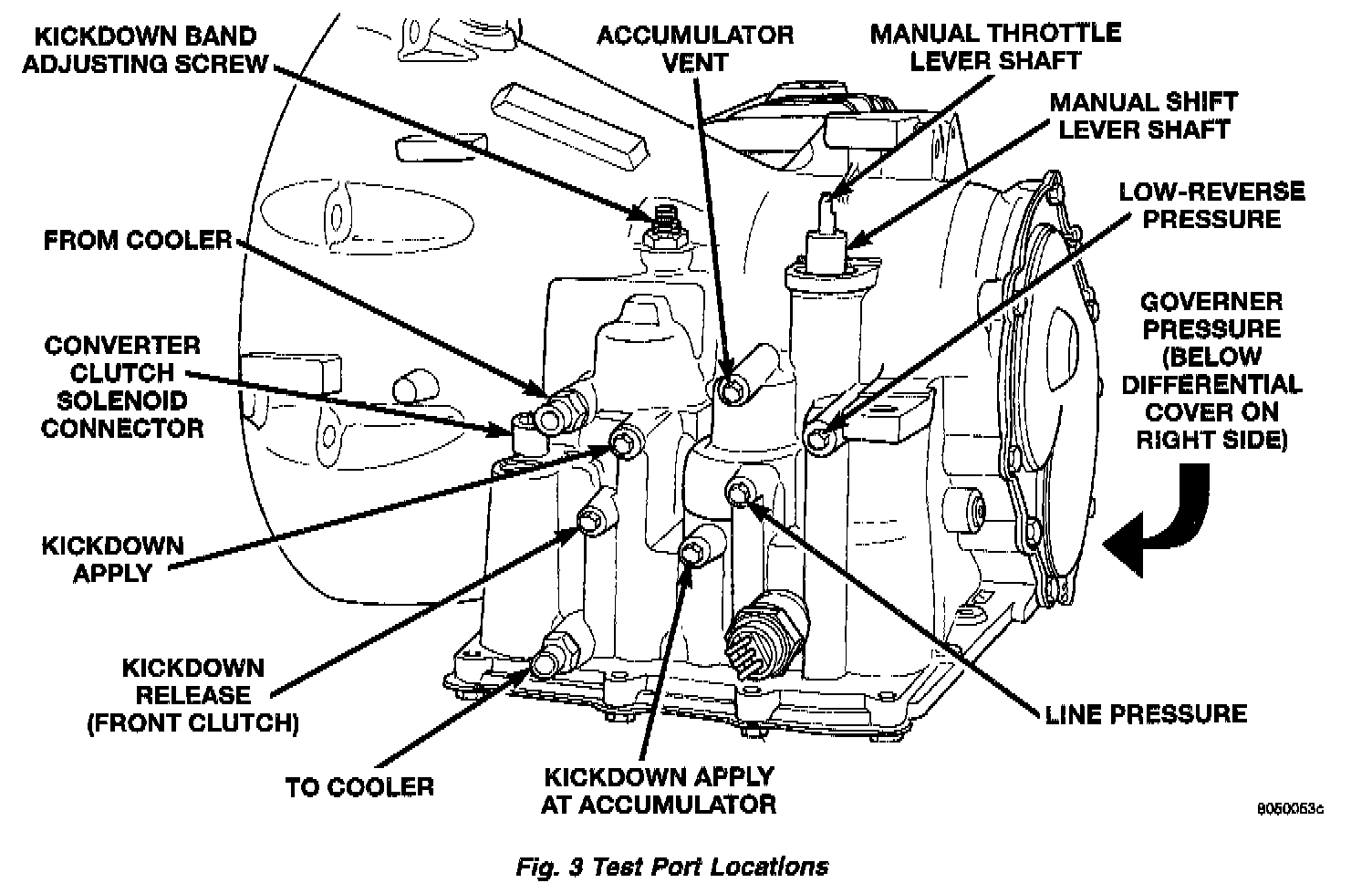 No gauge port is provided for throttle pressure. Incorrect throttle pressure should be suspected if part throttle upshift speeds are either delayed or occur too early in relation to vehicle speed. Engine runaway on shifts can also be an indicator of low throttle pressure setting, or misadjusted throttle cable.