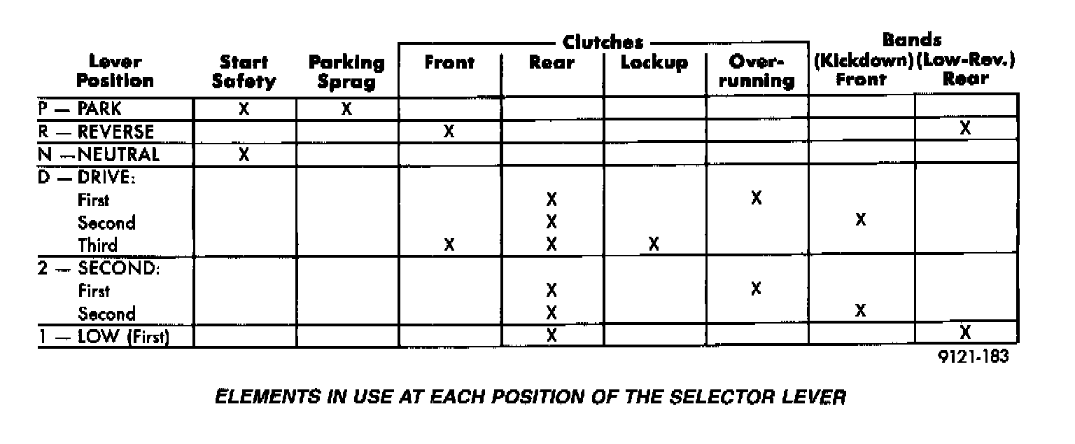 Elements In Use At Each Position Of The Selector Lever: