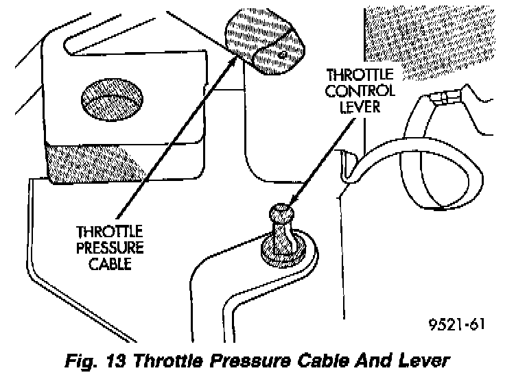 1. Unsnap the throttle pressure cable end at the throttle control lever at transaxle (Fig. 13).