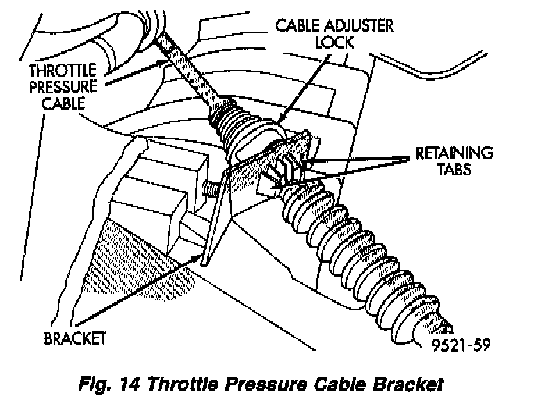 The throttle pressure cable adjustment is very important to proper transaxle operation. This adjustment positions a valve that controls shift speed, shift quality, and part throttle downshift sensitivity. If the setting is too long, early shifts and slippage between shifts may occur. If the setting is too short, shifts may be delayed and part throttle downshifts may be very sensitive.