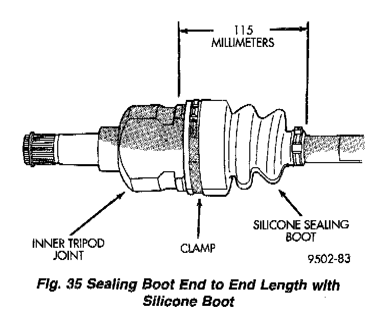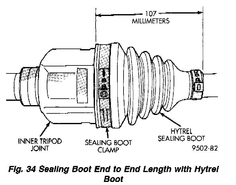 NOTE: The inner tripod joint sealing boots are made from two different types of material. High-temperature applications use silicone rubber whereas standard temperature applications use Hytrel plastic. The silicone sealing boots are soft and pliable. The Hytrel sealing boots are stiff and rigid. The replacement sealing boot MUST BE the same type of material as the sealing boot that was removed.