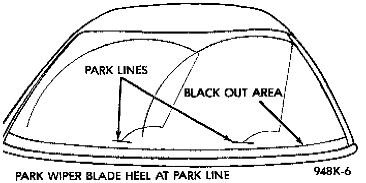 4. In the event that the wiper blade tip excessively strikes the cowl screen due to long term normal wear, reposition the wiper blade heel slightly above the park line. Make sure that the wipers are in the PARK position.